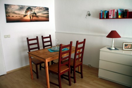 1 Wohnzimmer mit Essecke und zusätzlichem Schlafplatz,